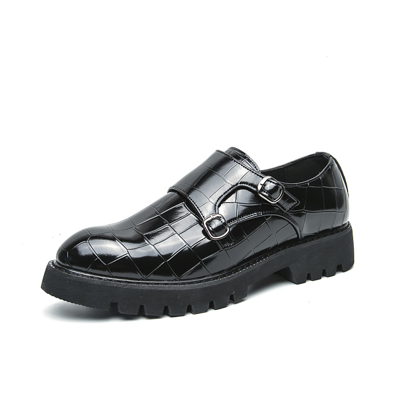 Men's Tan Faux Leather Double Monk Strap Shoes - Crocodile Print, Fashion-Forward, Ideal for Semi-Formal Casual Outings