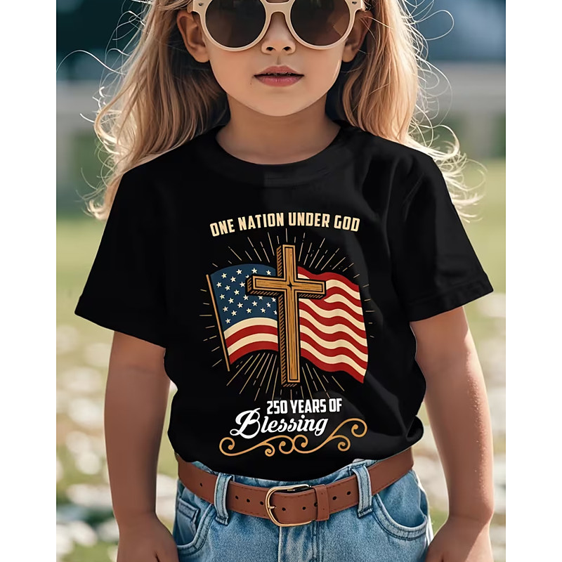 100% Cotton Kids Girls' Black Graphic Cross 250th Anniversary Kid's American US Flag T shirt Tee Crew Neck Short Sleeve Vacation Sports Outdoor Dailywear Active Vacation Casual Printing Summer