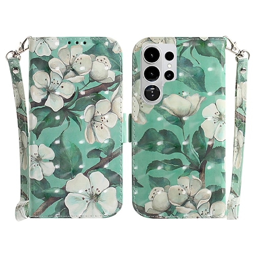 Samsung Galaxy S26 Ultra Plånboksfodral Konstläder Cherry Blossom - Grön