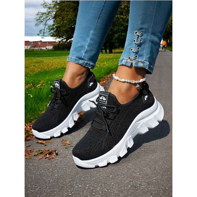 Women's Bright Orange Flyknit Running Sneakers – Breathable Lace-Up Walking Shoes for Fitness, Travel and Daily Errands