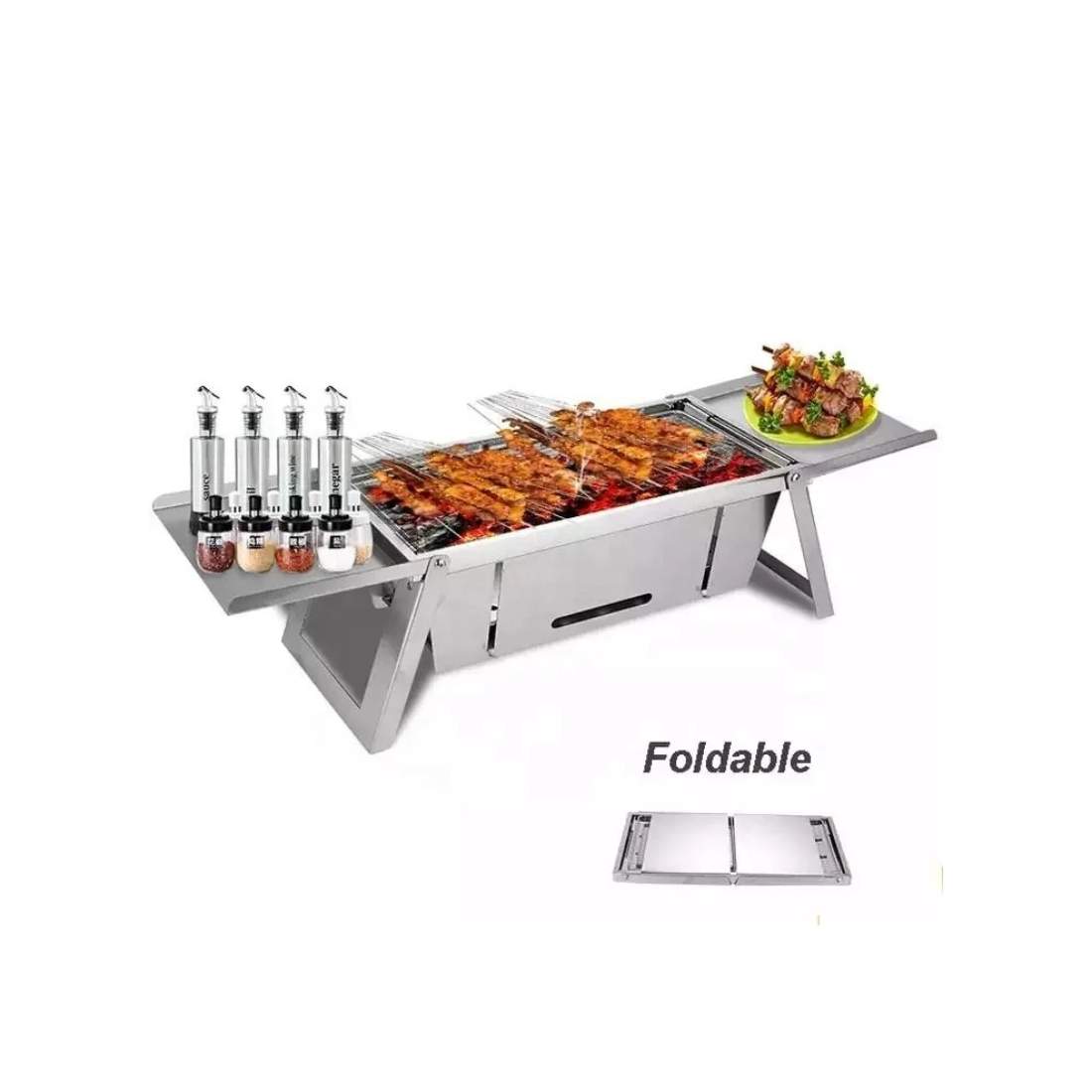 Herzberg HG-04159: Sammenfoldelig bordplade i rustfri stål grill