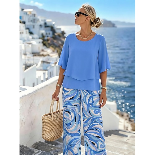 Set di 2 pezzi da donna moda streetwear pantaloni abbigliamento quotidiano maniche corte collo giro floreale grafico vacanza casual quotidiano rosa blu azzurro estate taglio largo
