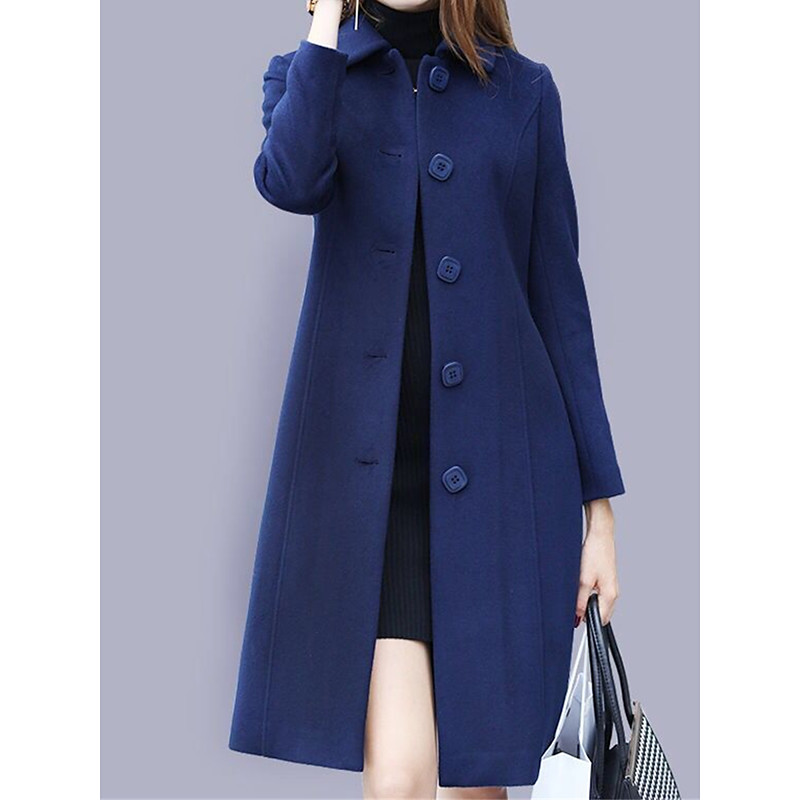 Women's Coat Outdoor Office / Career Fall Winter Long Coat Regular Fit Windproof Warm Comtemporary Stylish Lady Jacket Long Sleeve Plain with Pockets Black Red Royal Blue