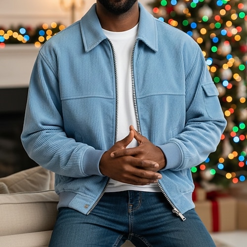Men's Waffle Jacket Bomber Jacket Home Work Pocket Minimalist Fall All Seasons Solid Color Active Daily Stand Collar Regular Dark Gray Black Burgundy Navy Blue Green Jacket