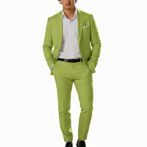 Herren Lässig Strandhochzeit Leinenanzüge Gekerbtes Revers Himmelblau Salbei Mode Täglich Einfarbig Standard Passform 2-teilig Einreihige Zwei-Knopf-Jacke