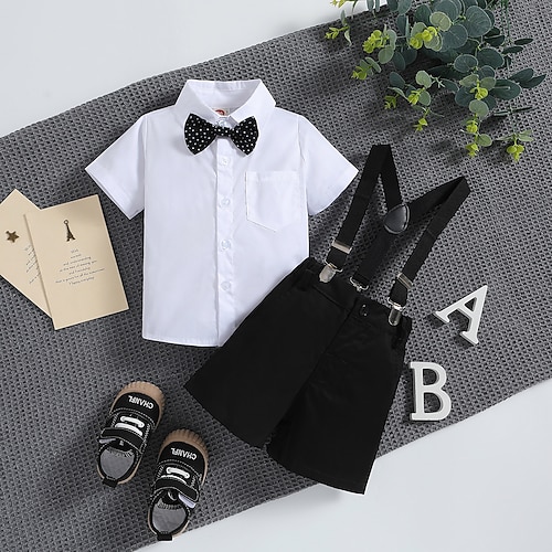 Jungen 3D Einfarbig Shirt Shorts Kurzarm Sommer Mode Täglich Kleinkind 1-5 Jahre Rundhalsausschnitt Jahrestag Geburtstag Lässiger Schnitt