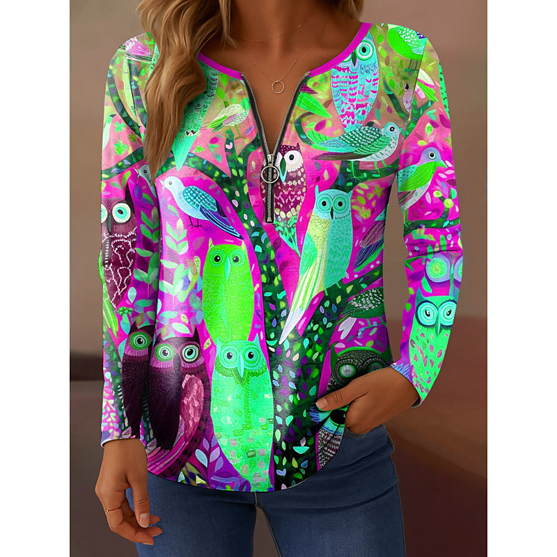 Ostern Damenshirt Langarm Viertelreißverschluss Langarm Lässig Floral Grafik Elegant Vintage Stylisch V-Ausschnitt Regelmäßige Oberteile Täglich Gelb Pink Blau Orange Grün Frühling Herbst Vorsaison