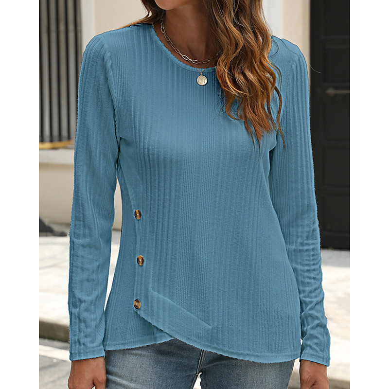 Women's T Shirt Solid Color Vintage Stylish Basic Long Sleeve Crew Neck Regular Tops Daily Black White Pink Blue Orange Fall Winter