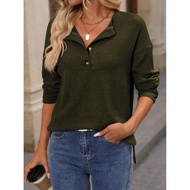 Women's Shirt Blouse Plain Elegant Fashion Daily Long Sleeve V Neck Regular Tops Valentine's Day Casual Pink Red Orange Green Khaki Fall Winter