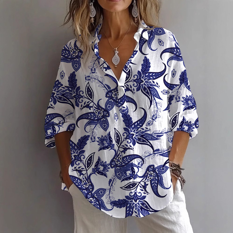 Women's Shirt Blouse Floral Casual Long Sleeve Shirt Collar Regular Tops Daily Holiday Going out Buttons Blue Yellow Orange Rose Pink Summer Spring