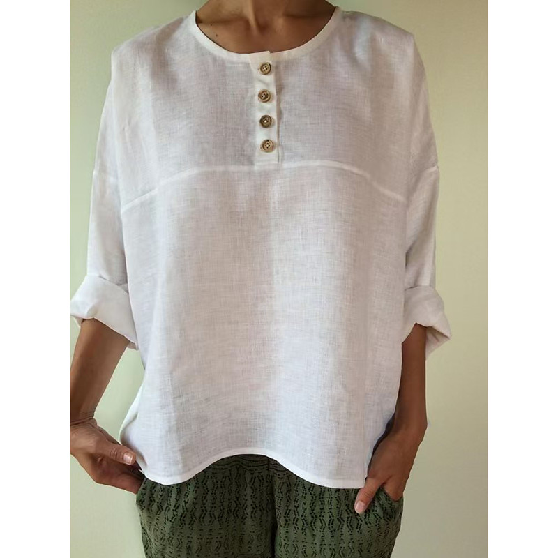 Women's Cotton Linen Shirts Elegant Bohemia Vintage Long Sleeve Crew Neck Regular Tops Daily Holiday Buttons Orange-red Black White Pink Sky Blue Summer Spring Fall Winter