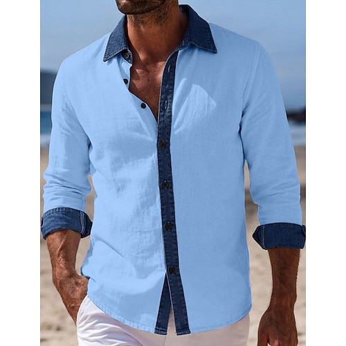 Per uomo Camicia Camicia di lino Camicia Estiva Abbigliamento da spiaggia Camicia da Spiaggia Camicia con Bottoni Blocco di colori Vacanza Ferie Blu Nero Bianco Rosa Manica Lunga Collo ripiegato