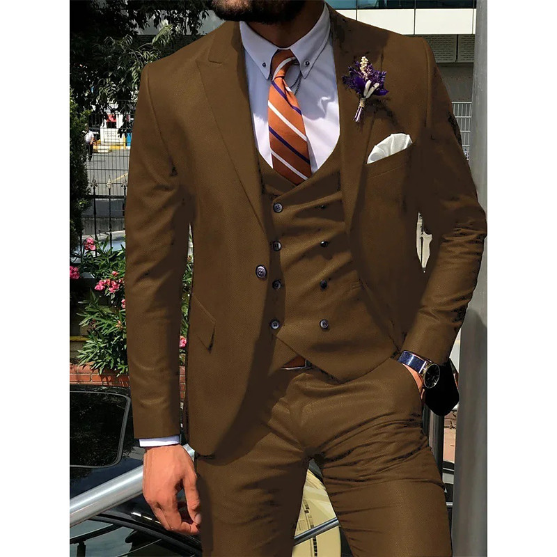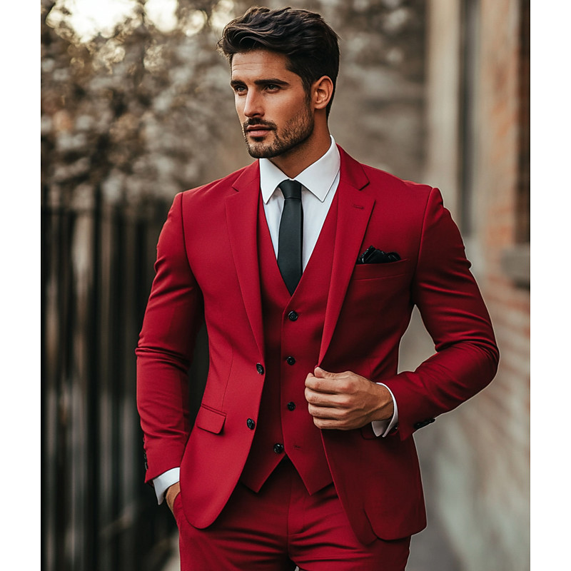 Men's Wedding Business Suits Notch Lapel Burgundy Navy Blue Fashion Formal Solid Colored Standard Fit 3 Piece Single Breasted Two-buttons