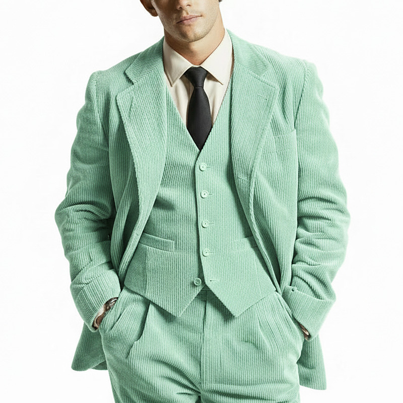 Men's Wedding Casual Suits Peaked Lapel Sage Fashion Solid Colored Standard Fit 2 Piece Double Breasted Six-buttons