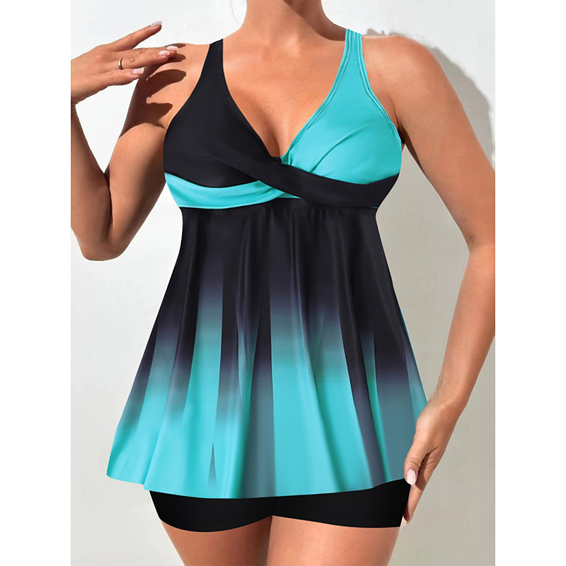 Women's Tankini 2 Piece Swimsuit Colorblock Shorts Tummy Control High Waist Slim Backless Vacation Beach Wear Ombre Halter Neck Sleeveless Bathing Suits