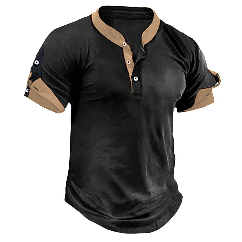 Men's T shirt Tee Henley Shirt Tee Top Plain Henley Street Vacation Short Sleeves Clothing Apparel Fashion Designer Basic