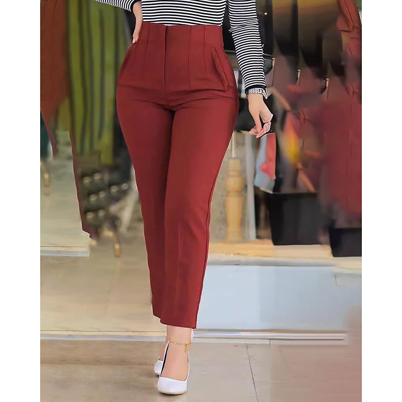 Women's Dress Pants Fashion Full Length Natural Plain Elastic Waist Comfortable Work Business claret Depression Green Apricot Black Fall Regular Fit