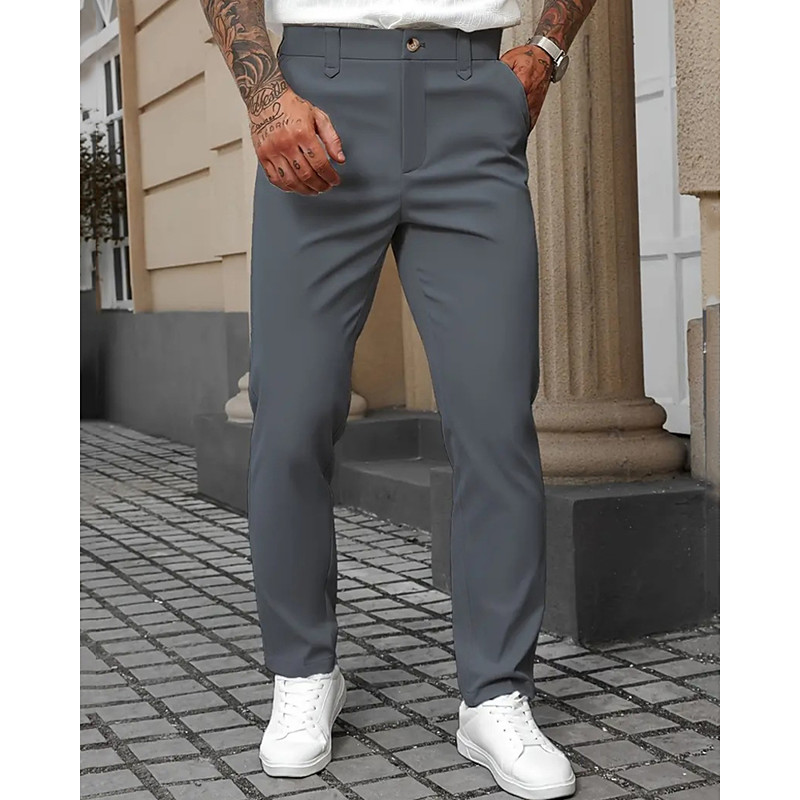 Men's Dress Pants Trousers Chinos Pocket Buttons Plain Comfort Formal Party Work Fashion Classic Style Black White Micro-elastic