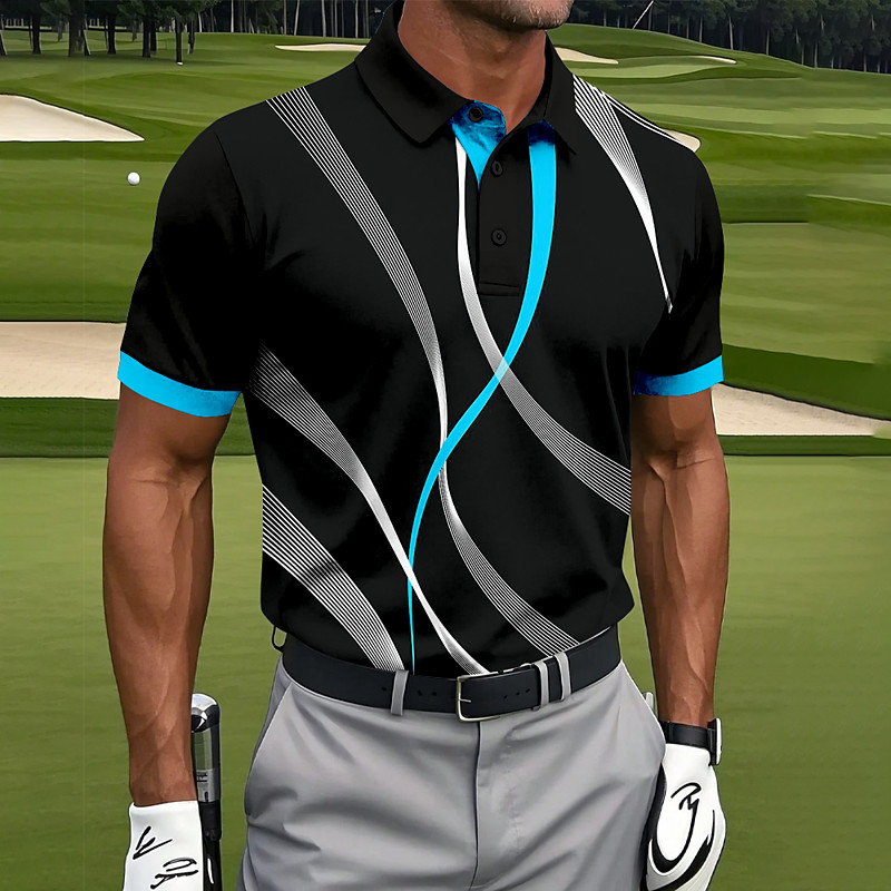 Men's Golf Line Polo Sports Polo Shirts Short Sleeve Polo Shirts Collared Shirts Casual Athleisure Buttons Summer Black White Blue
