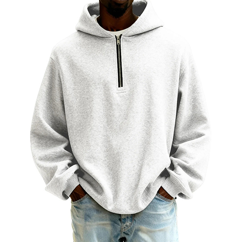 Men's Button Up Hoodie Black White Khaki Gray Light Blue Hooded Plain Quarter Zip Sports Outdoor Casual Daily Streetwear Cool Sportswear Spring Fall Clothing Apparel Hoodies Sweatshirts Long