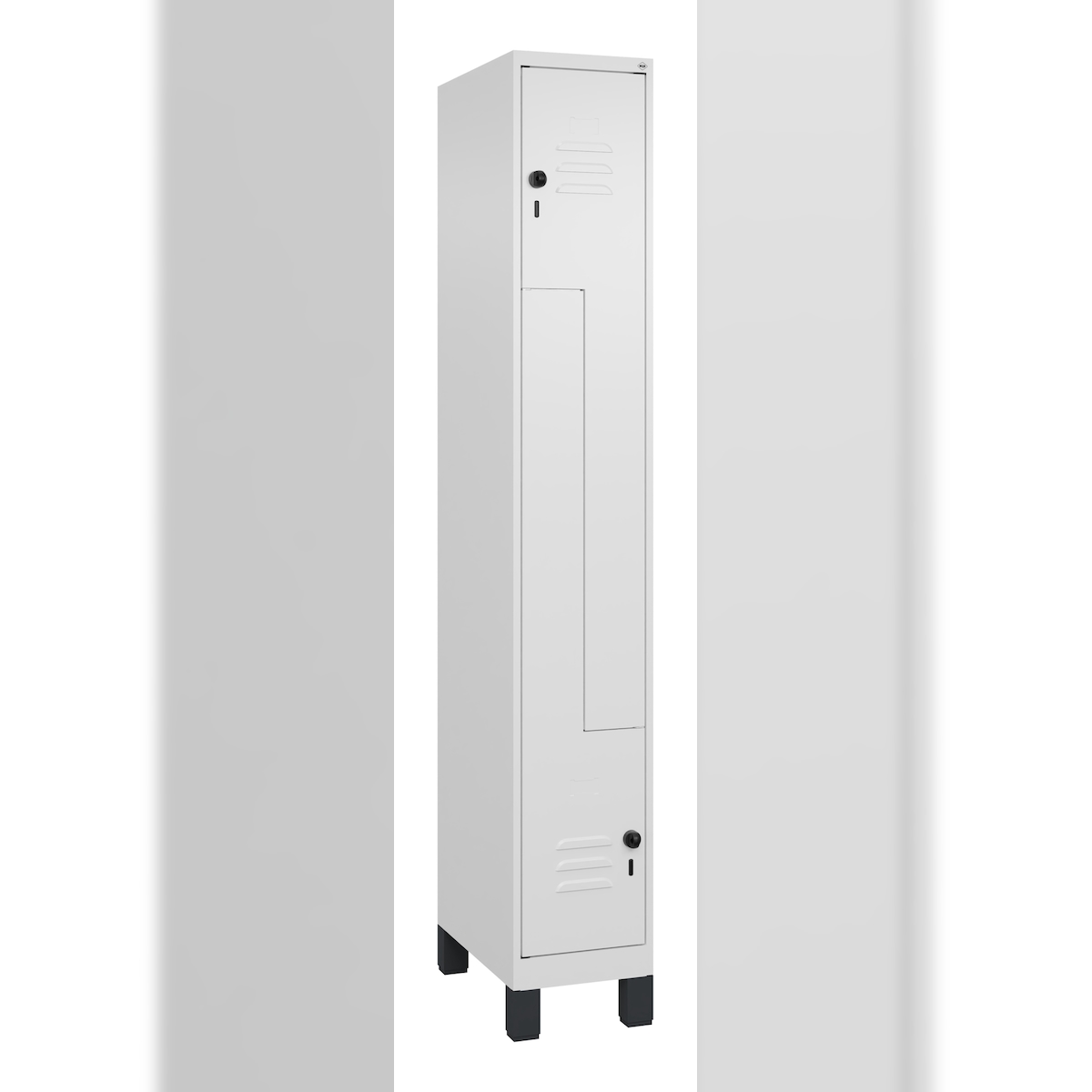 C+P Z-Spind Classic PLUS, Füßen, 2 Abteile, HxBxT 195x30x50cm, Sicherheitsdrehriegel, Verkehrsweiß von PROREGAL