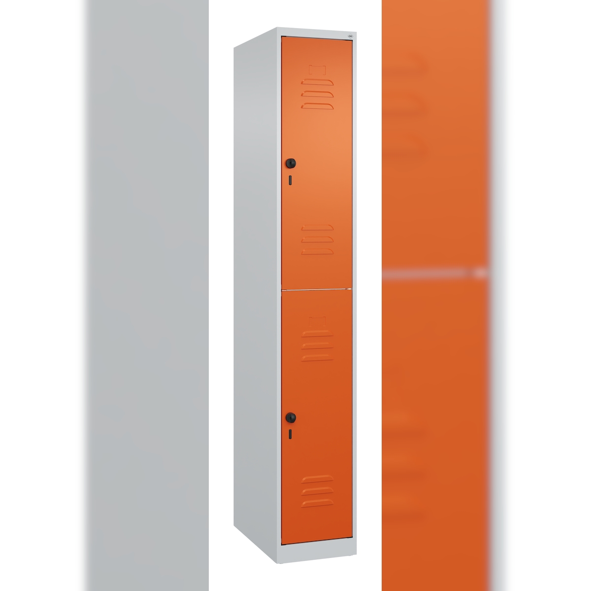 C+P Spind Classic PLUS, 2 Abteile, HxBxT 185x30x50cm, Sicherheitsdrehriegel, Hellgrau/Reinorange von PROREGAL