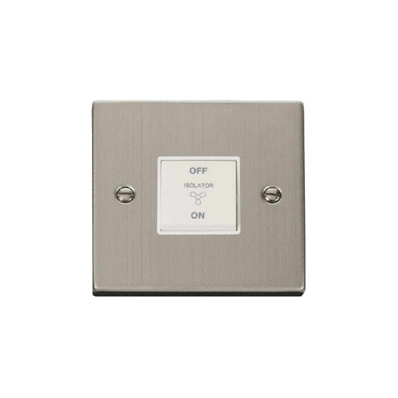 Click Deco 10A 1 Gang 3 Pole Fan Isolation Switch Stainless Steel Insert White