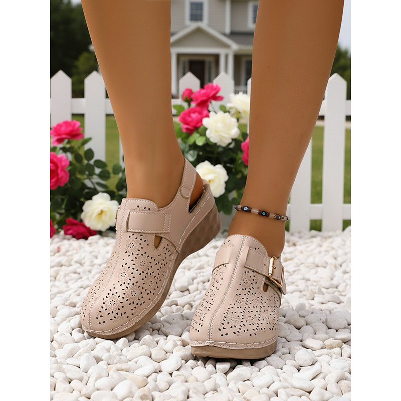 Women's Beige Flat Sandals with Cutout Design – Elegant Slingback Open-Toe Shoes for Summer, Casual Vacation Looks