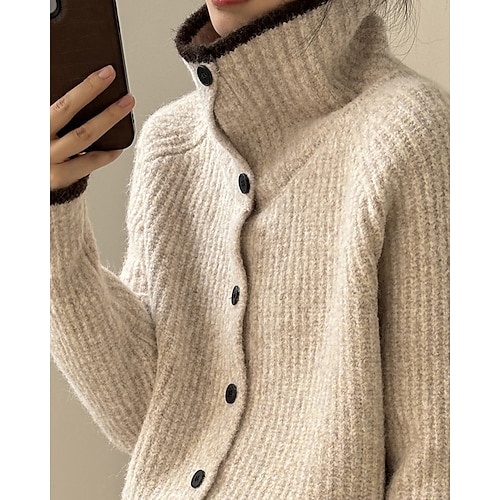 Per uomo Cardigan Maglia Patchwork Cerniera Tinta unica Colletto arrotolato Maglieria Elegante Scuola Allenamento Abbigliamento Autunno Inverno Rosso marrone Nero S M L