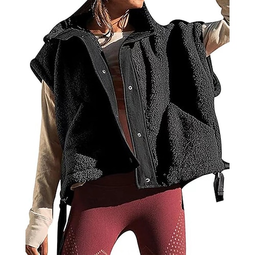 Per donna Gilet in pile Gilet Caldo Confortevole Tasca Bottoni Casual Tinta unica Vacanza Streetwear Casuale Abbigliamento quotidiano Regolare Collo ripiegato Vestibilità regolare Senza Maniche