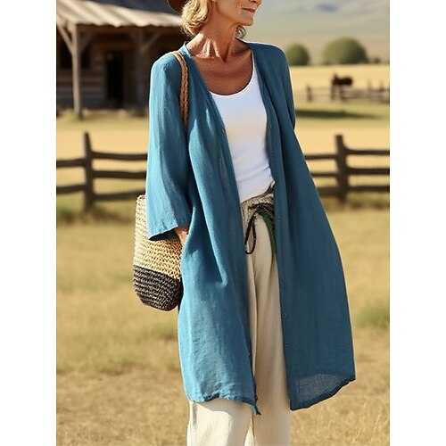 Per donna Tunica Tinta unica Liscio Moda Lavoro Manica lunga Asimmetrico Ufficio Giornaliero Bottoni Grigio scuro Primavera Autunno Inverno