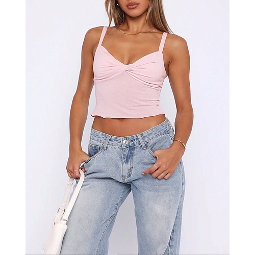 Per donna Normale Tuta Vacanze Tinta unica Senza maniche Senza maniche Girocollo Da mare Ufficio Standard Rosso arancione Amy Green Nero Estate