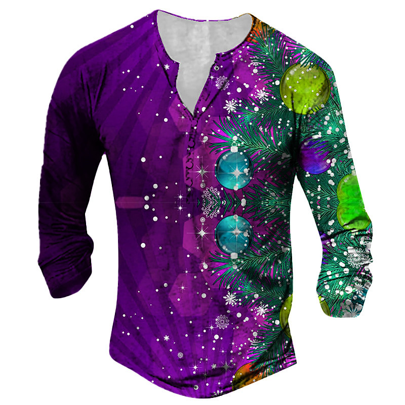 Christmas T Shirt Men's T shirt Tee Henley Shirt Tee Graphic Letter Henley Light Green Green Green / White 3D Print Outdoor Christmas Long Sleeve Button-Down Print Clothing Apparel Designer Basic