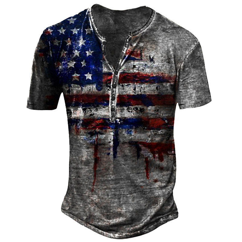 Men's American Independence Day Graphic Prints American Flag National Flag T Shirt Henley Shirt Short Sleeve 3D Print Sports Fashion Designer Outdoor Street Daily Summer Black Army Green Brown Light