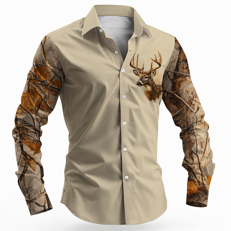 Men's Camo Reindeer Camouflage Shirt Button Up Shirt Long Sleeve Vintage Retro Outdoor Camping Hiking Hunting Spring Fall Turndown 3D Print Collared Shirts Army Green Khaki
