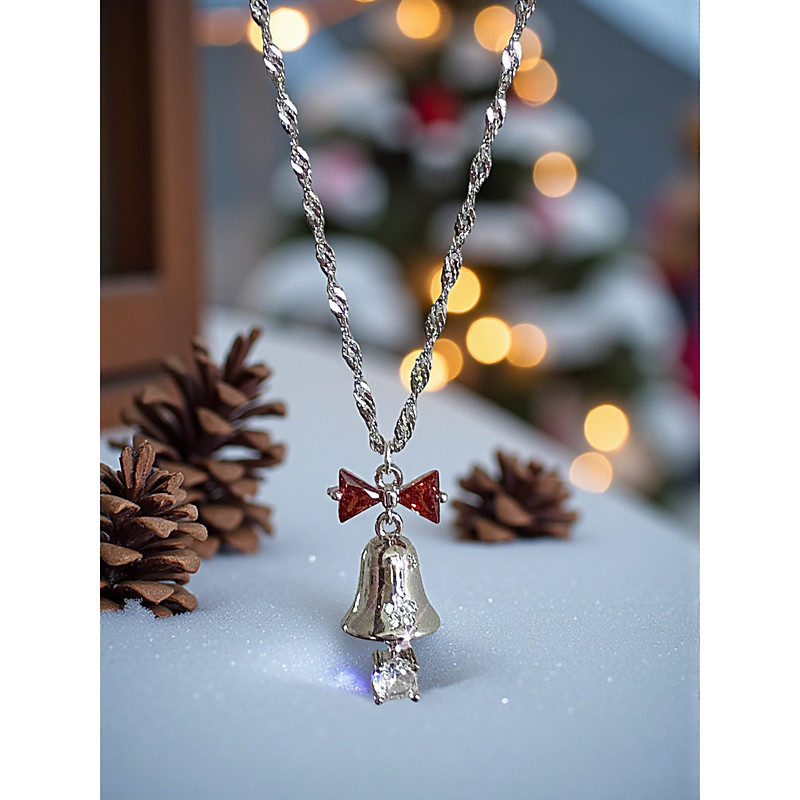 Women's Christmas Bell Necklace with Red Bow and Crystal Accents, Festive Holiday Jewelry for Christmas Parties and Winter Celebrations