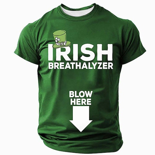 St. Patrick's Day T-Shirt mit irischem Alkoholtester-Motiv: Hier pusten! Grünes Herren-T-Shirt mit lustigem Grafikmotiv, Koboldhut und Kleeblatt. Größen: S, M, L, XL, XXL, XXXL