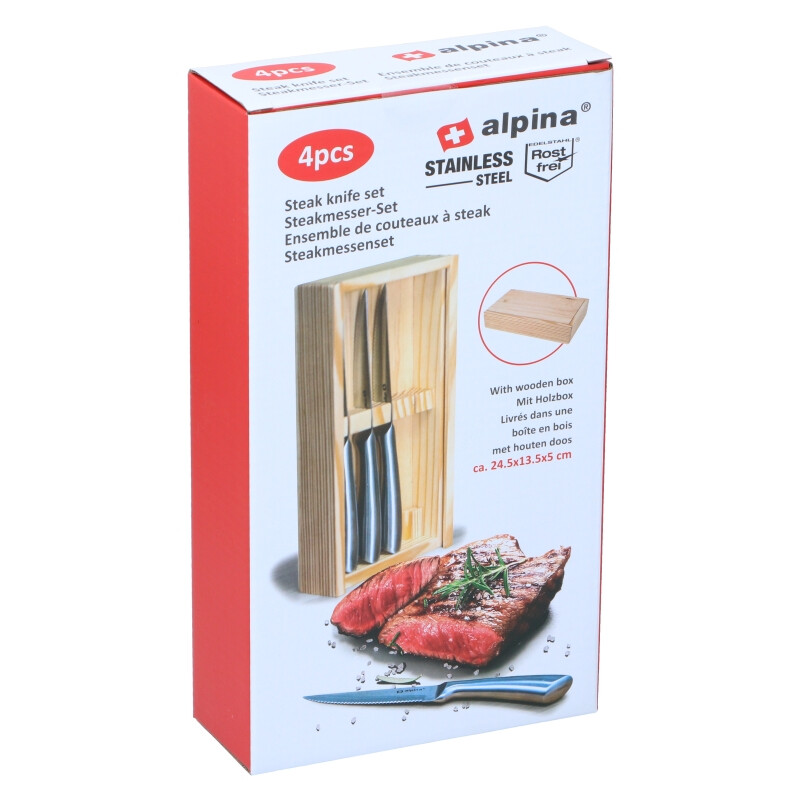 Alpina Coffret de couteaux à steak - 4 pièces en boîtier en bois