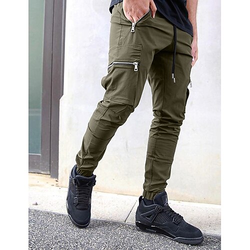 Per uomo Pantaloni di lino Jogger cargo Pantaloni Pantaloni estivi A cordoncino Vita elastica Multi tasca Liscio Comfort Traspirante Lunghezza intera Esterno Informale Giornaliero Di tendenza Classico