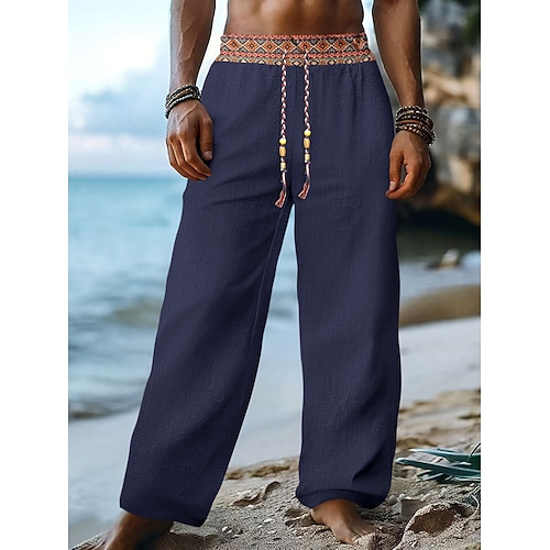 Per uomo Pantaloni di lino Pantaloni Pantaloni estivi Pantaloni da spiaggia A cordoncino Vita elastica Gamba dritta Liscio Comfort Traspirante Lunghezza intera Informale Giornaliero Per eventi