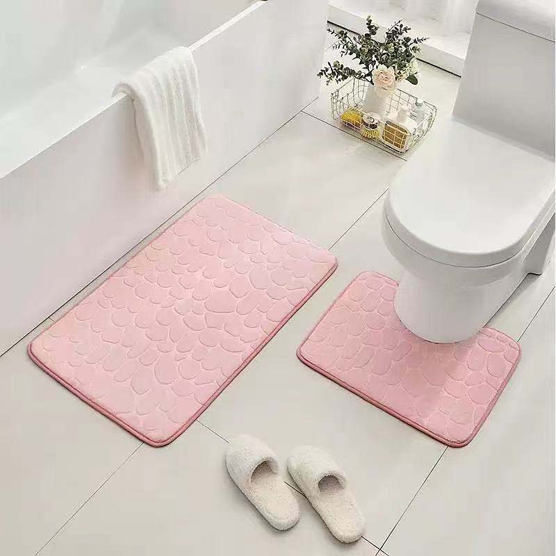 Pebble Stone Shape Non-Slip Coral Fleece Bath Mat Easy to Clean Bathroom Floor Mat for Shower and Restroom Use