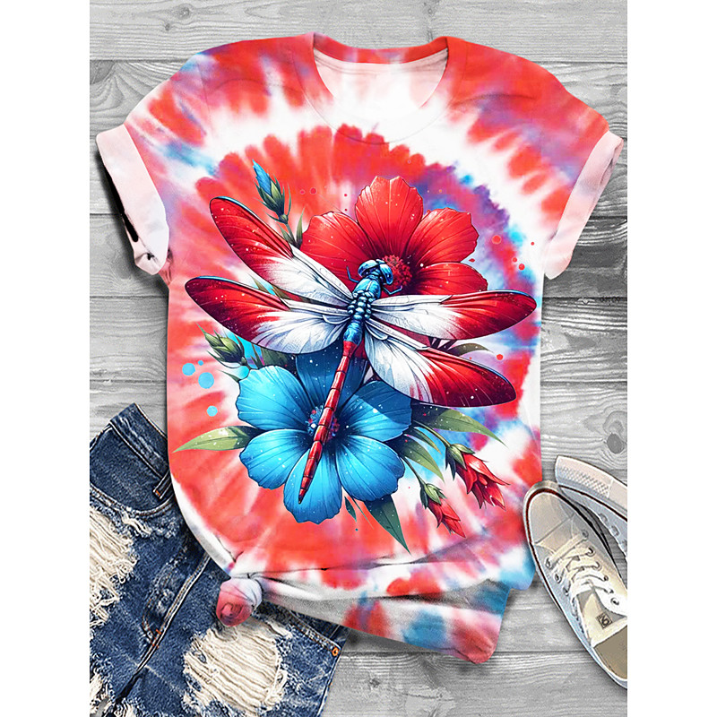 American Independence Day Women's T Shirt Graphic Butterfly American Flag Vintage Stylish Casual Short Sleeve Crew Neck Regular Tops Daily Weekend Print Blue White Red Summer Spring