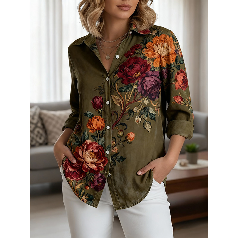 Women's Shirt Dressy Tops Formal Work Shirt Floral Graphic Elegant Stylish Casual Long Sleeve Cowl Neck Work Party Evening Wear Daily Ruched Draped Yellow Purple Brown Green Spring Fall