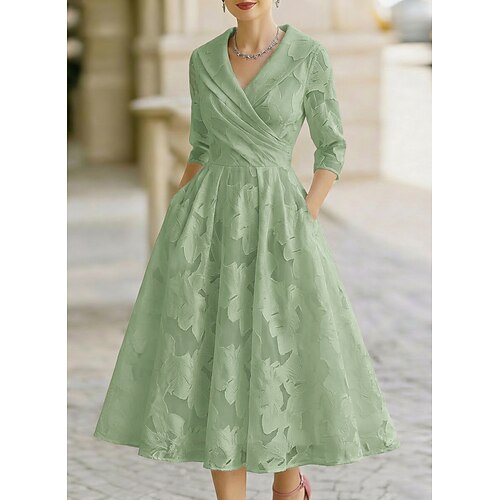 Linea ad A Lunghezza alla caviglia Lunghezza Tè Abito Camicia Abito Formale Abito da cerimonia per signora Manica 3/4 Colletto a Camicia Elegante Vintage Formale Ospite di nozze Derby del Kentucky