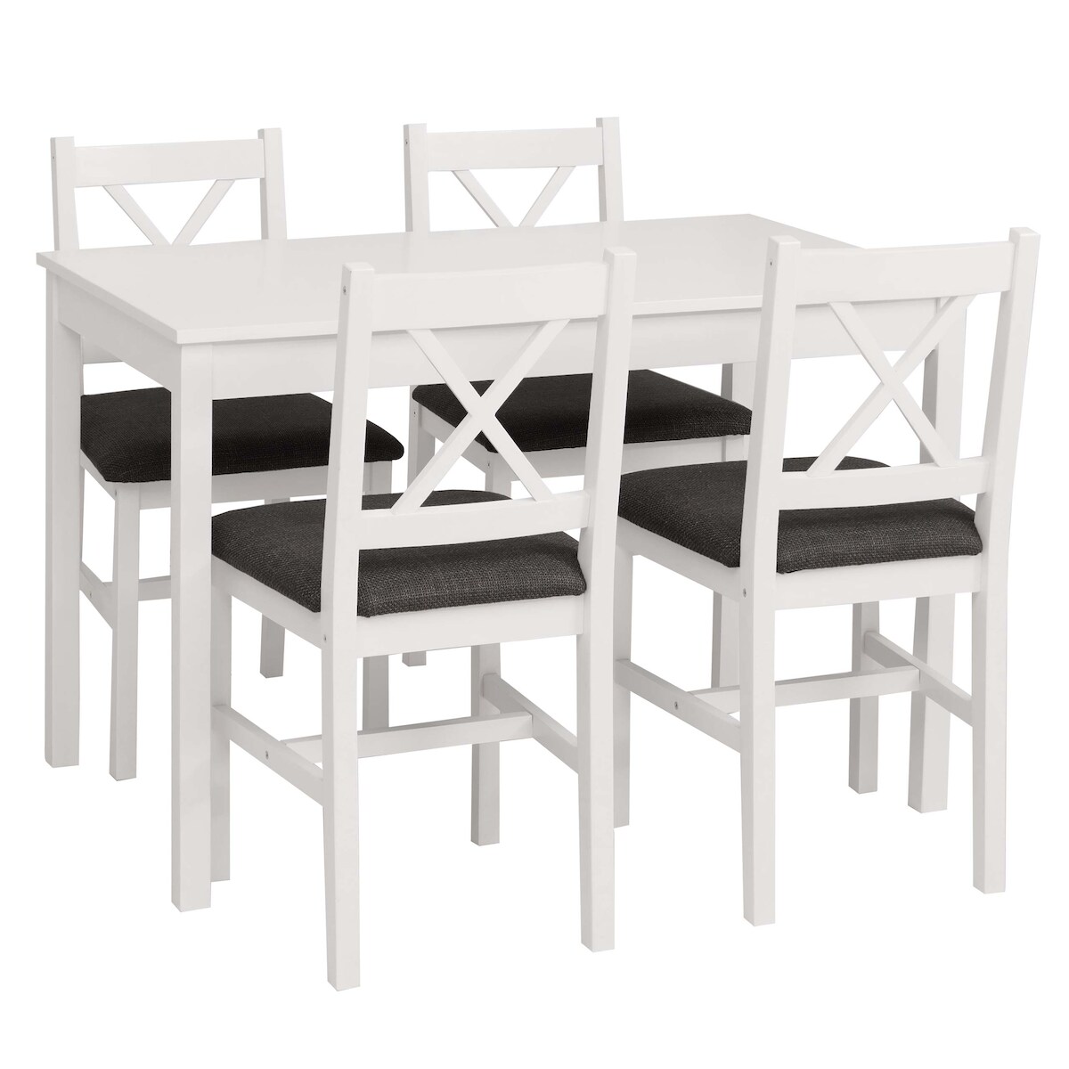 Mendler Esszimmer-Set HWC-F77, Sitzgruppe Esszimmergruppe, Massiv-Holz Kiefer Stoff Landhaus 110cm ~ weiß Polster schwarz