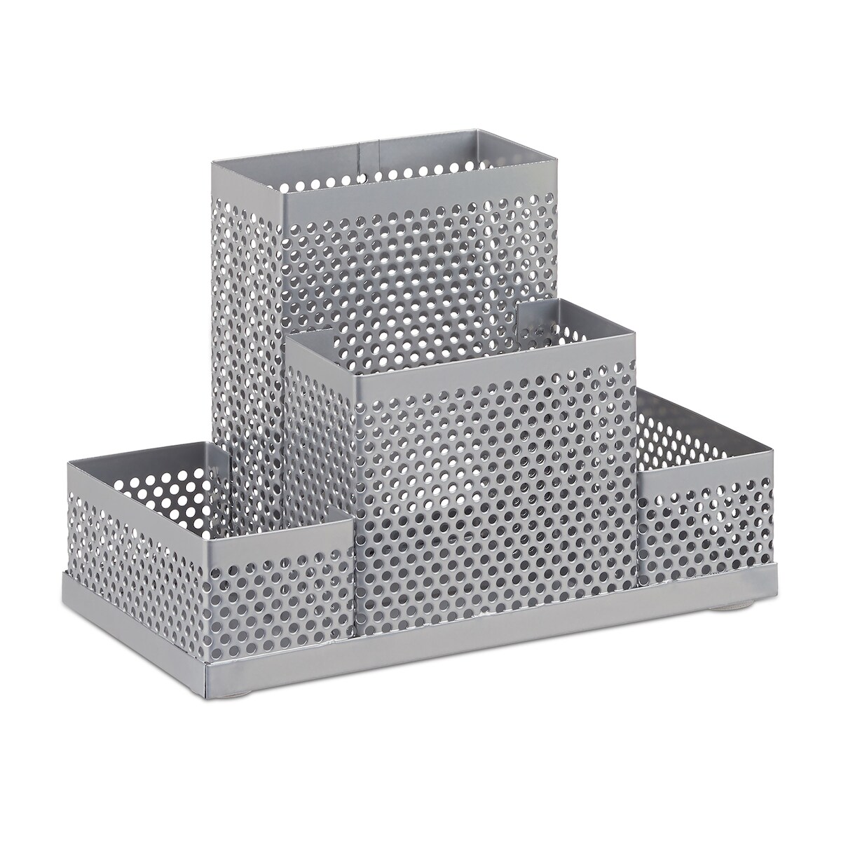 Relaxdays Schreibtischorganizer Metall, Büro Stiftehalter, Schreibtischköcher Kinder, gelocht, HxBxT: 11x16x8cm, silber