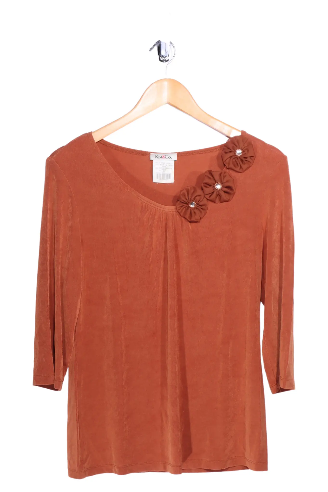 KIM & CO. Twin Set Damen XS Orange 3/4-Ärmel Blumenapplikation