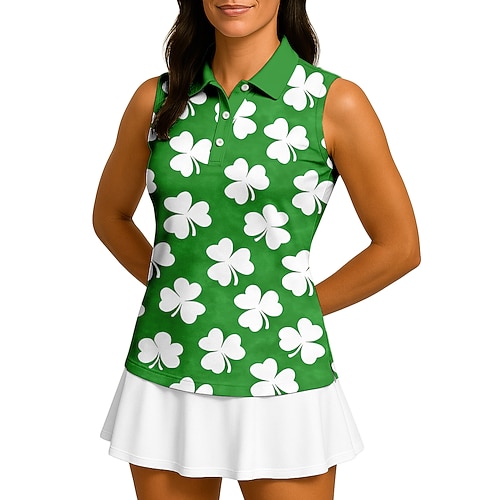 San Patrizio Per donna Trifoglio Maglietta sportiva Polo da golf Canotta Maglia da tennis Senza Maniche Floreale Bottoni UPF50 Resistente ai Raggi UV Alta elasticità Traspirante Pallavolo Tennis Golf