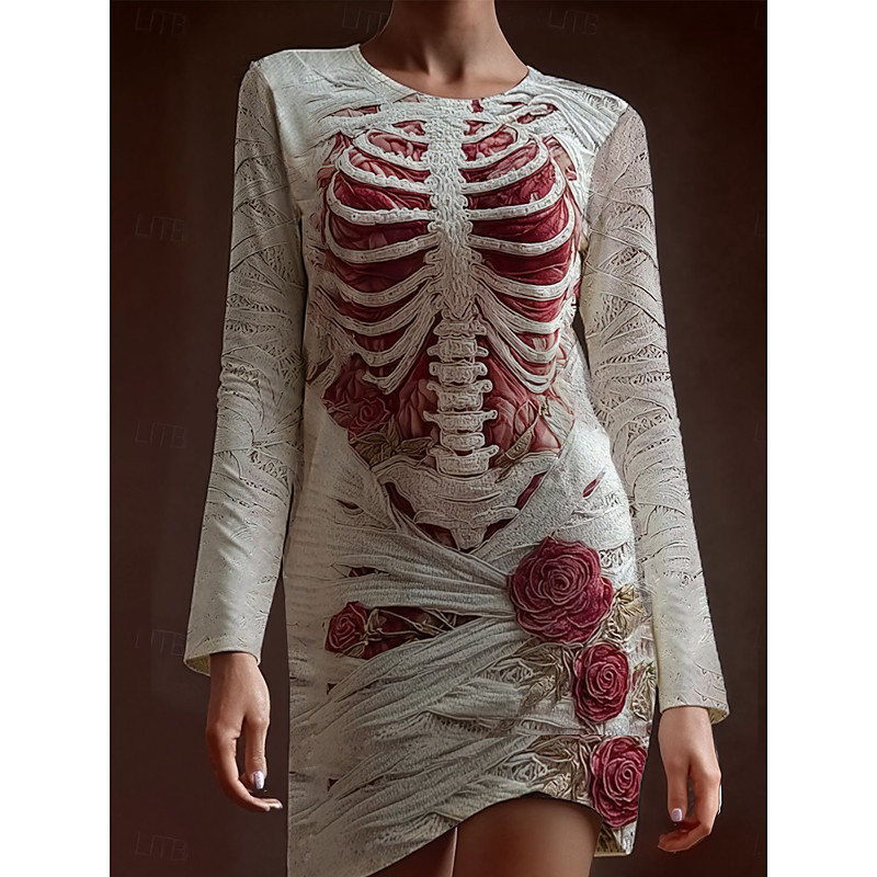 Women's Mini Dress Bodycon T Shirt Dress Tee Dress Bodycon Dress Vacation Casual Party Regular Fit Graphic Skull Long Sleeve Crew Neck White Spring Fall Winter
