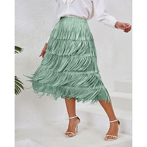 Per donna Abito Midi Abito in Raso Abito Camicia Abito da Cocktail Abito arricciato Moderno All'aperto Uscire Weekend Vestibilità regolare Semplice Manica Lunga Colletto a Camicia Vino Verde militare